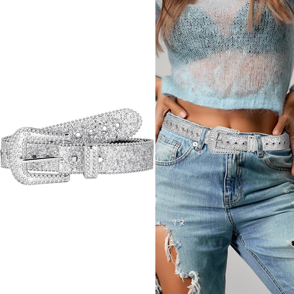 • Versatile style: Whether for music festivals, equestrian shows, or daily wear, this silver rhinestone belt complements a variety of outfits, bling belts for women can add a stylish and eye-catching touch to your look.
