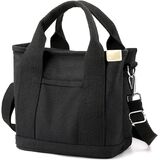 • 【Multi-pocket Canvas Tote Bag】 Tote bags are available in 2 sizes, large tote:12.6"L x 5.9"W x 11.4"H , handle height: 7.5"; mini small tote: 9.0"L x 5.9"W x 8.3"H, handle height: 4.0". You can choose canvas tote bags of different sizes and colors according to your fashion and travel needs. Perfect size crossbody tote bag to hold your daily essentials with ease.