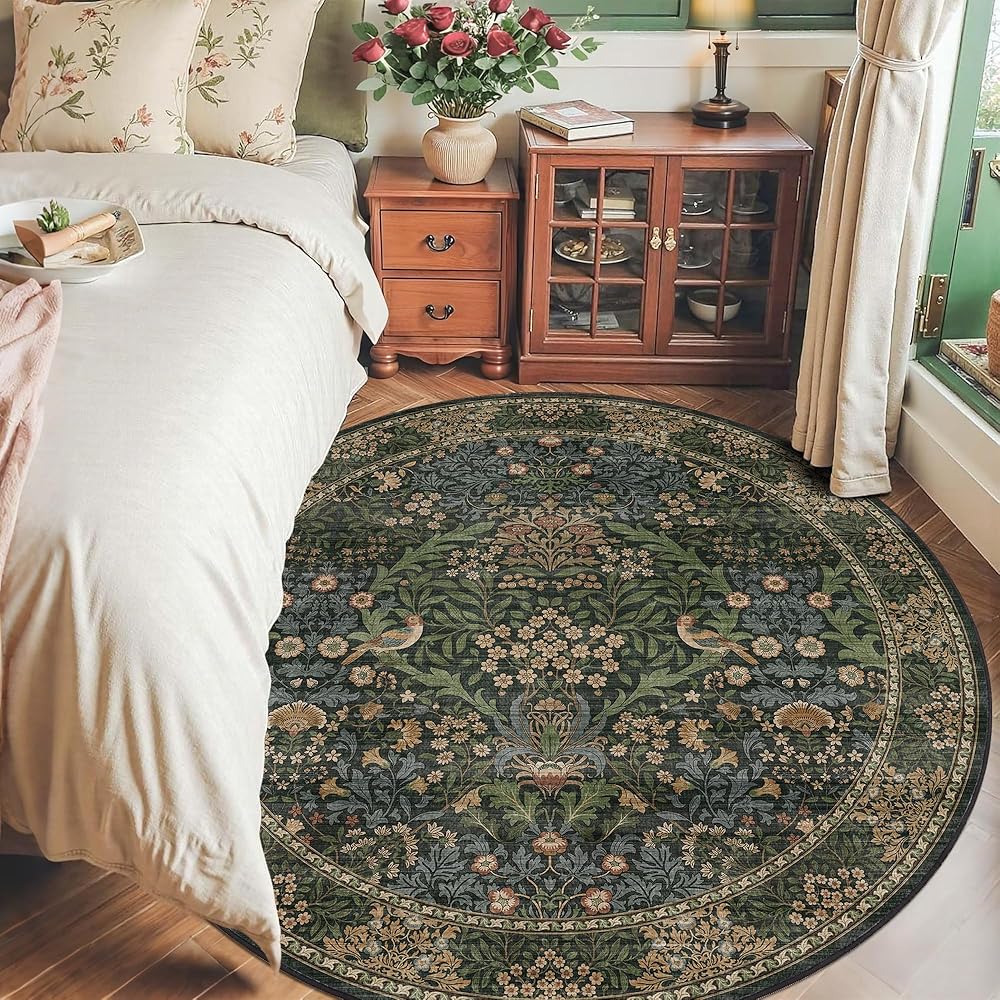 الأناقة النباتية القديمة: تتميز سجادة الرمي الوظيفية الخفيفة الوزن هذه بتصميم مستوحى من القرن التاسع عشر مع الأزهار المعقدة والطيور والزخارف الشرقية باللون الأسود والزمرد والطحلب والبيج والأزرق. إنه عنصر مزخرف مثالي لمختلف المناطق بما في ذلك غرفة المعيشة وغرفة النوم وغرفة الطعام والمطبخ والممر ، ويضيف أناقة خالدة إلى حياتك.