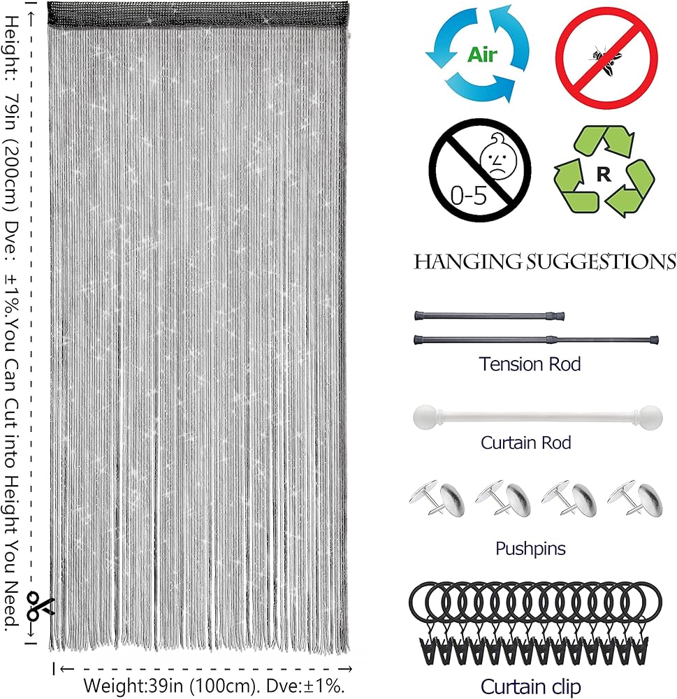 ✔️Easy to Hang: The String curtains hang using any standard curtain rod, if too long, you can easily trim size you need;It is a little bit elastic, we can trim them to flush height.These are not toys and are not intended for children to play with or move around unsupervised.