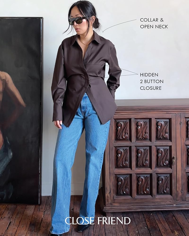 زر النساء لأسفل القمصان القابلة للتعديل من القمصان العليا طويلة الأكمام