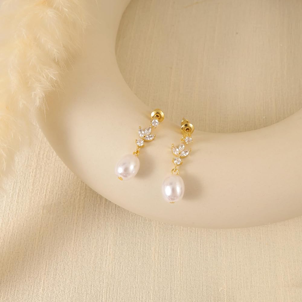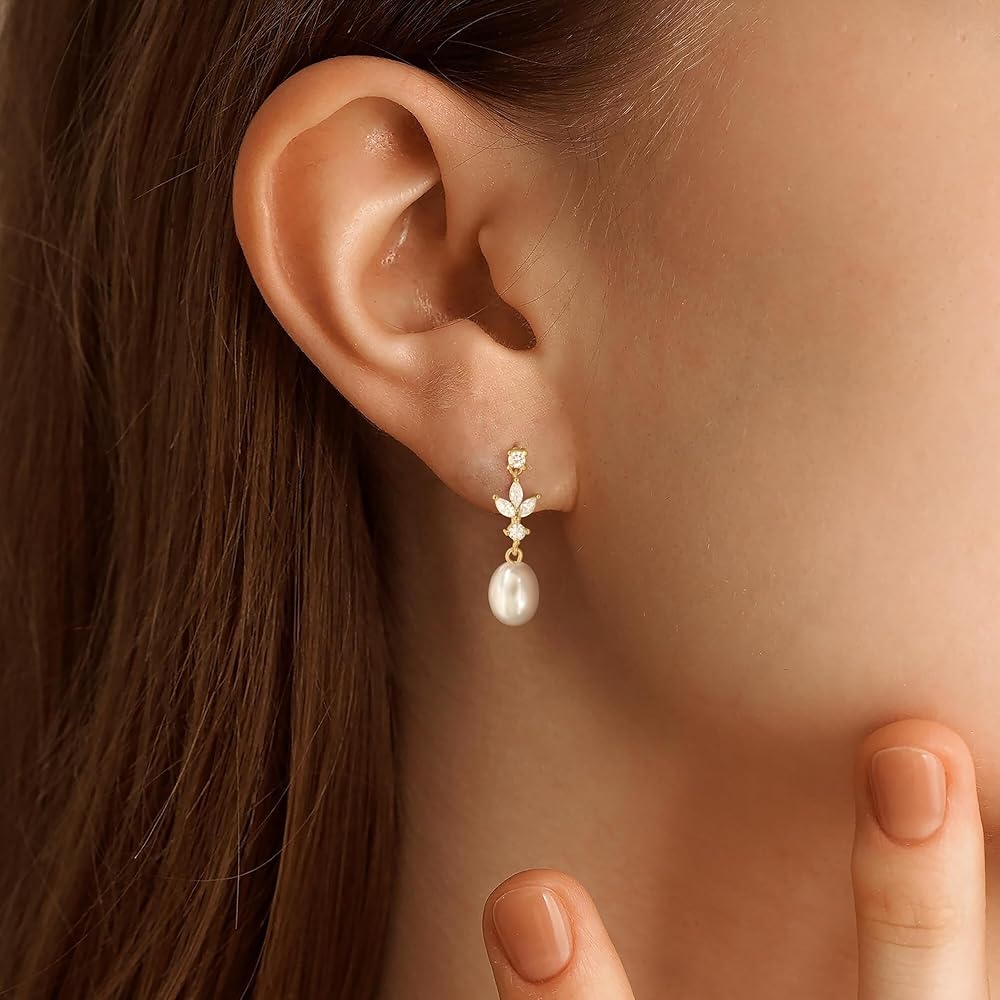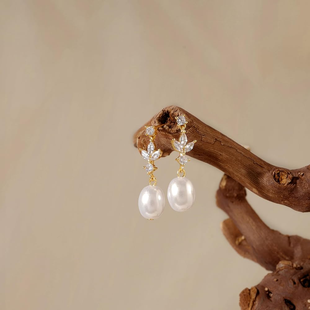 • تصميم القرط المعلق اللؤلؤ: هذا القرط اللؤلؤ مصنوع من مواد مطلية بالذهب 14K ، مع الزركون اللامع واللؤلؤ الأنيق الذي يسلط الضوء على مزاجه