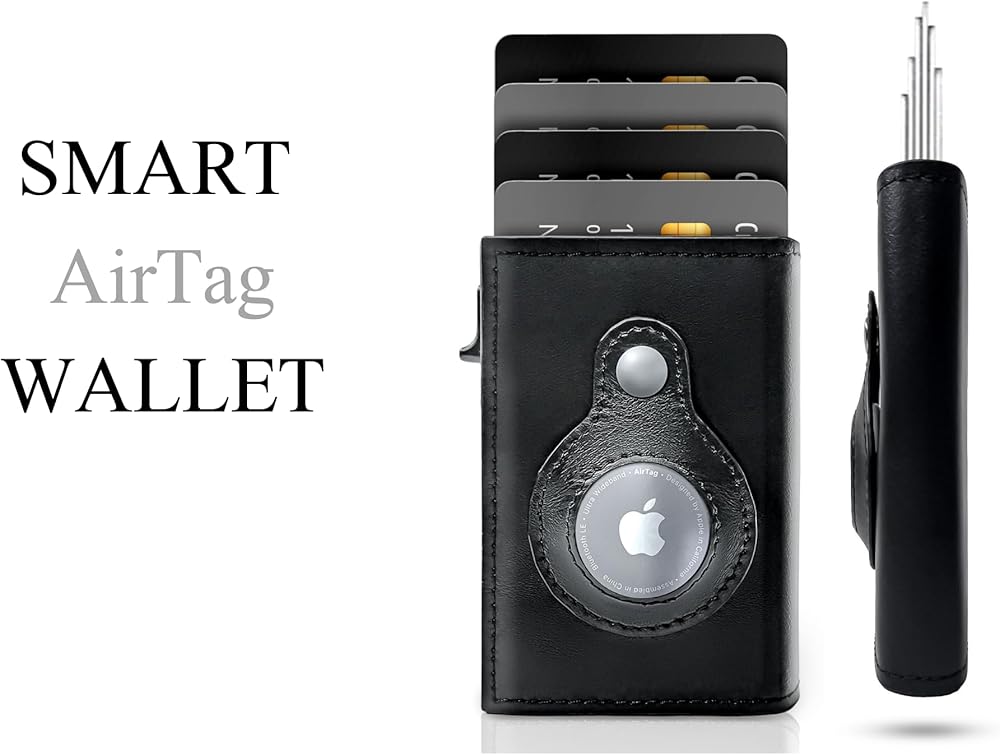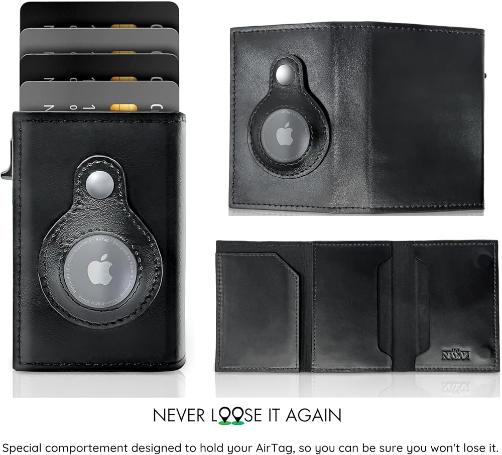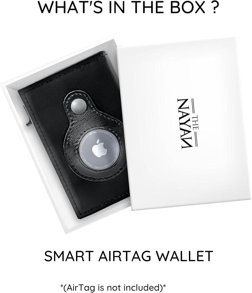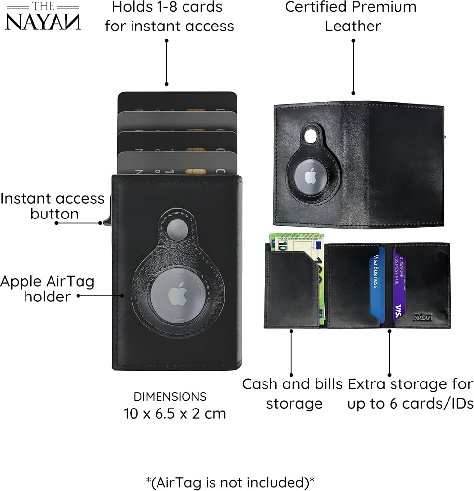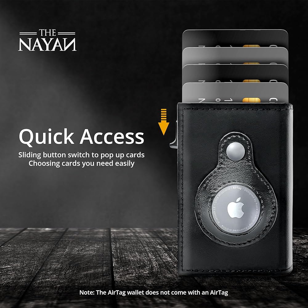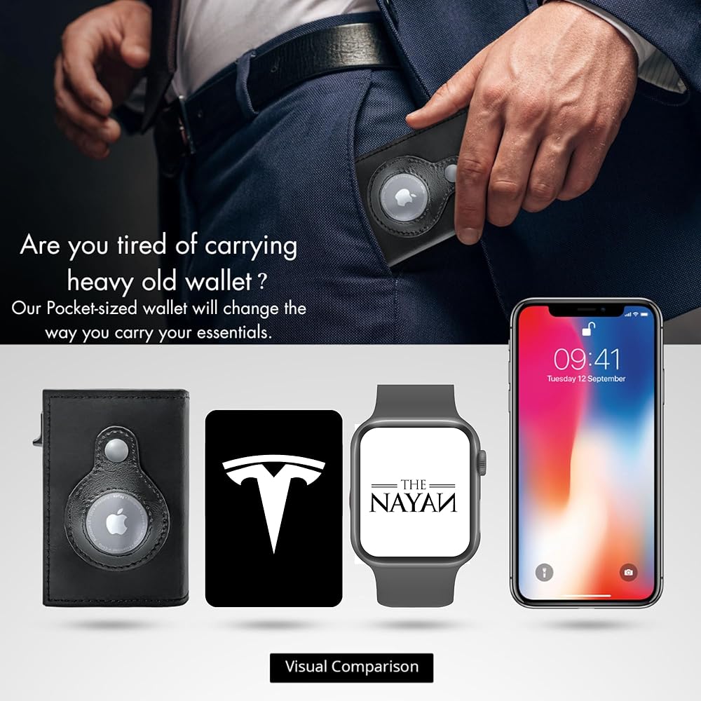 NAYAN Apple Wallet for Men Wallet with AirTag Holder - Genuine Leather Air Tag Wallet RFID Tech Credit Card Holder - Minimalist Smart Wallet for Men - Gift for Men- (AirTag not included)