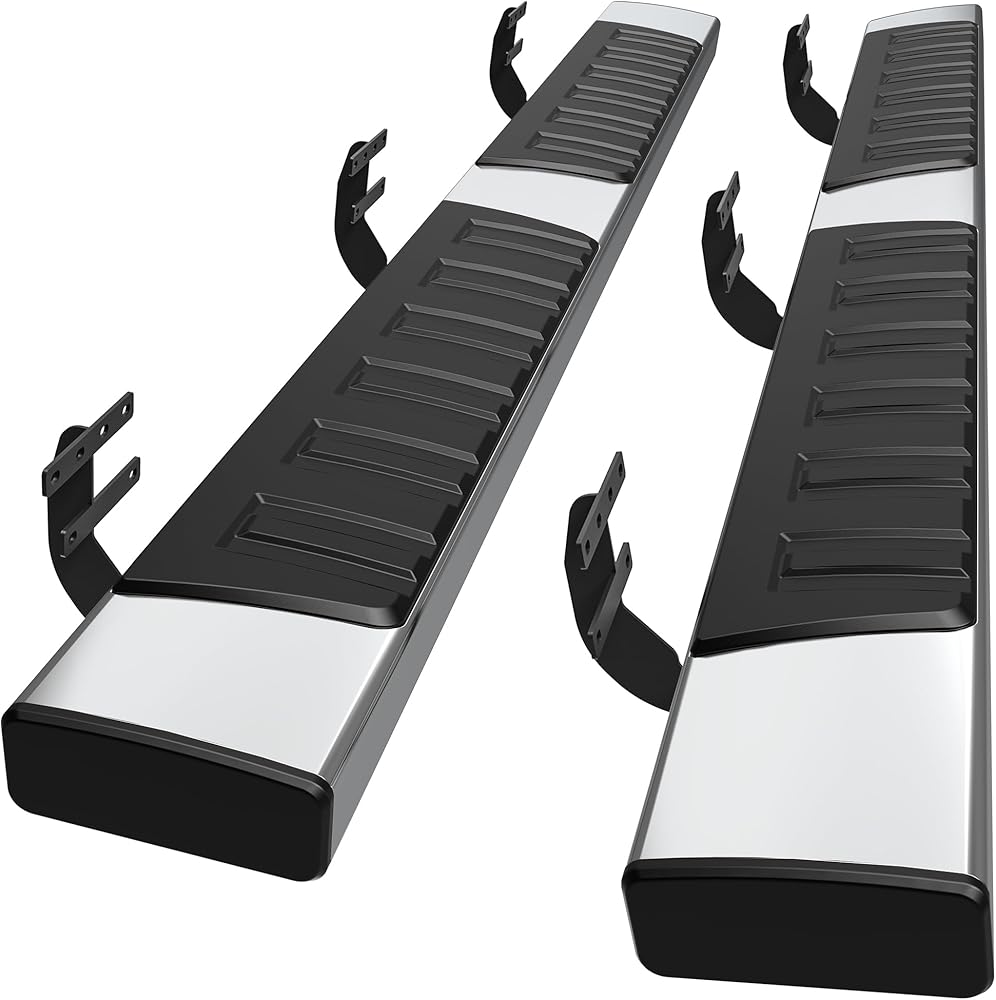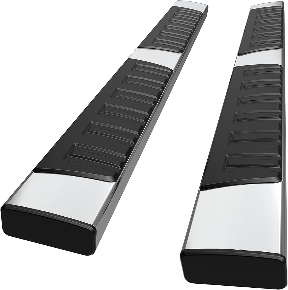 النمط: هناك ثلاثة أقواس على كل جانب ، خطوة واسعة 6 بوصات ، تمنحك الأمان بالكامل من سيارتك إلى الأرض. (التصميم غير الملحوم لهذه الألواح الجارية)