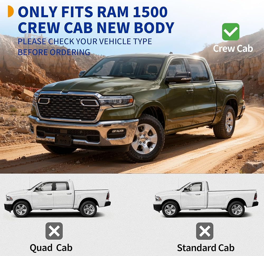التركيب: لوحات تشغيل لعام 2019 2020 2021 2022 2023 2024 2025 دودج رام 1500 طاقم كابسي جديد (استبعاد 2019-2025 كلاسيكي)