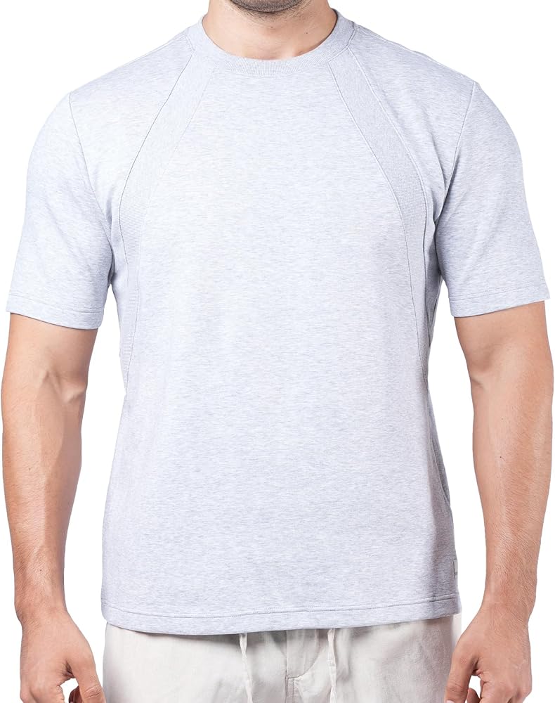【Stylish Design】This men's t-shirt combines a classic crew neckline with a unique ribbed texture that extends to the sides of the waist, which is both a great way to flatter your shape and add a stylish touch that will suit any body type