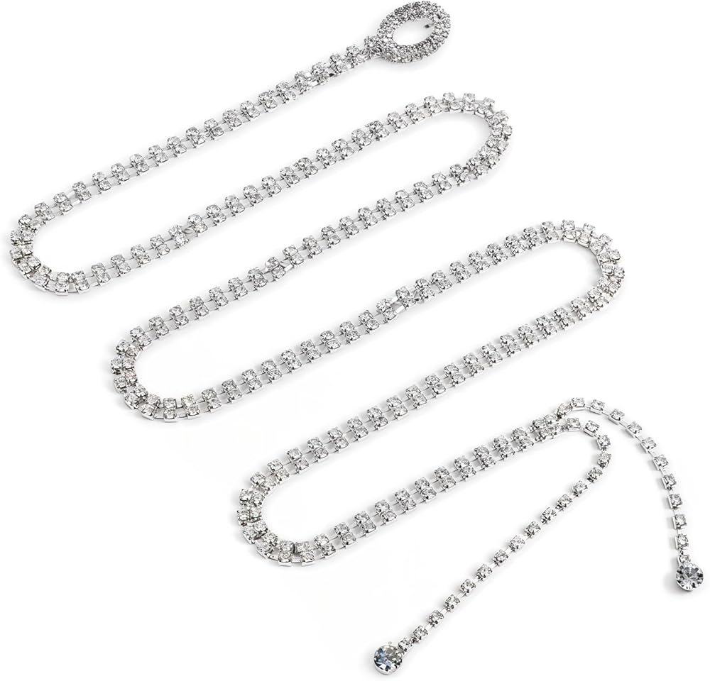 المواد الممتازة: مصنوعة من أحزمة حجر الراين الزجاجي عالي الجودة وسلسلة سبيكة الزنك المتينة ، يوفر هذا الحزام بريقًا رائعًا دون تشويه. يضمن البناء القوي التآكل طويل الأمد لمناسبات متعددة كأحزمة سلسلة فضية للنساء.
