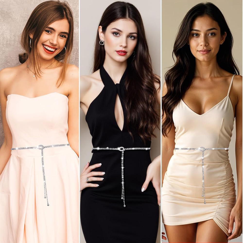ارتداء مريح: تتحرك أحزمة Bling Bling خفيفة الوزن للنساء بشكل طبيعي مع جسمك. تمنع بلورات المعادن والمعادن المسطحة الناعمة على الأقمشة الحساسة مع توفير الراحة طوال اليوم كأحزمة سلسلة نسائية.