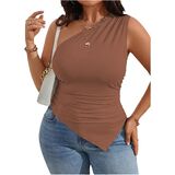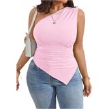 Features: Plus size going out tops for women, one shoulder, asymmetrical hem, ruched, sleeveless