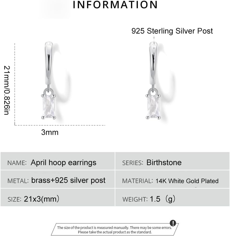 Seraphina Birthstone Hoop Earrings S925 Sterling Silver Post Lightweight Drop/Dangle Huggie Earrings for Women Trendy Small Hoop Earrings Birthday Gift