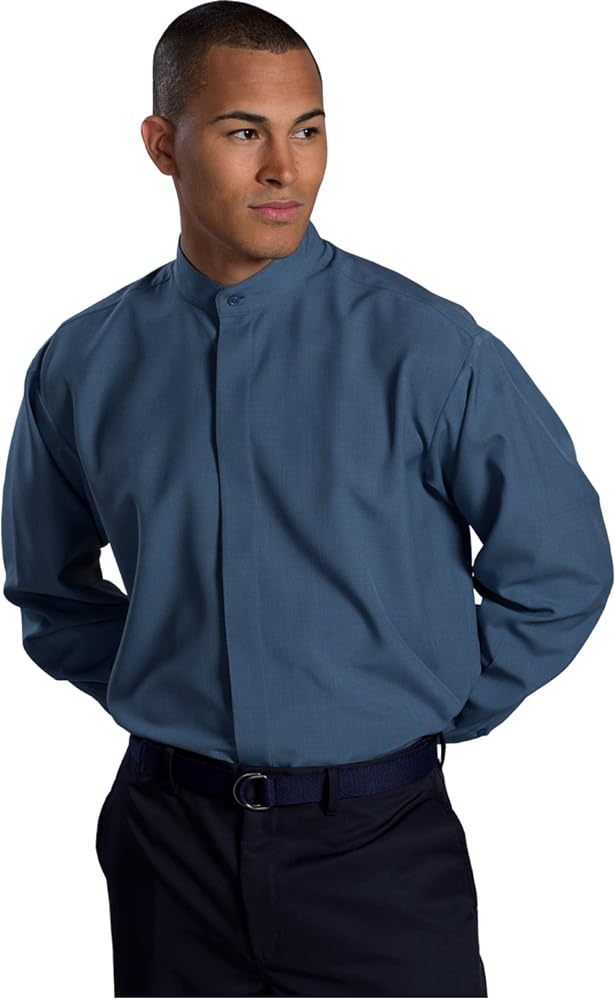 Batiste Banded Collar Shirt offers all day comfort and on trend fashion details. This modern fit has a hidden placket and the fabric is accented with an understated contemporary weave pattern. Perfect for resorts, restaurants or hotel properties. Embroiders well. 100% Polyester; 3.5/3.75 oz. wt. Contemporary pattern accents this soft, supple fabric, Two button adjustable cuff, Covered placket and no pocket, Modern fit and straight back yoke seam, Men's size: Regular, S-3XL, Tall, L-6XL.