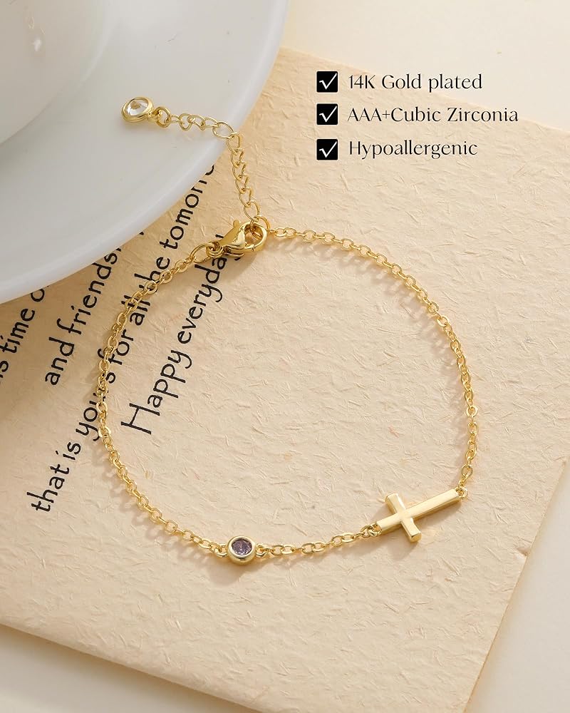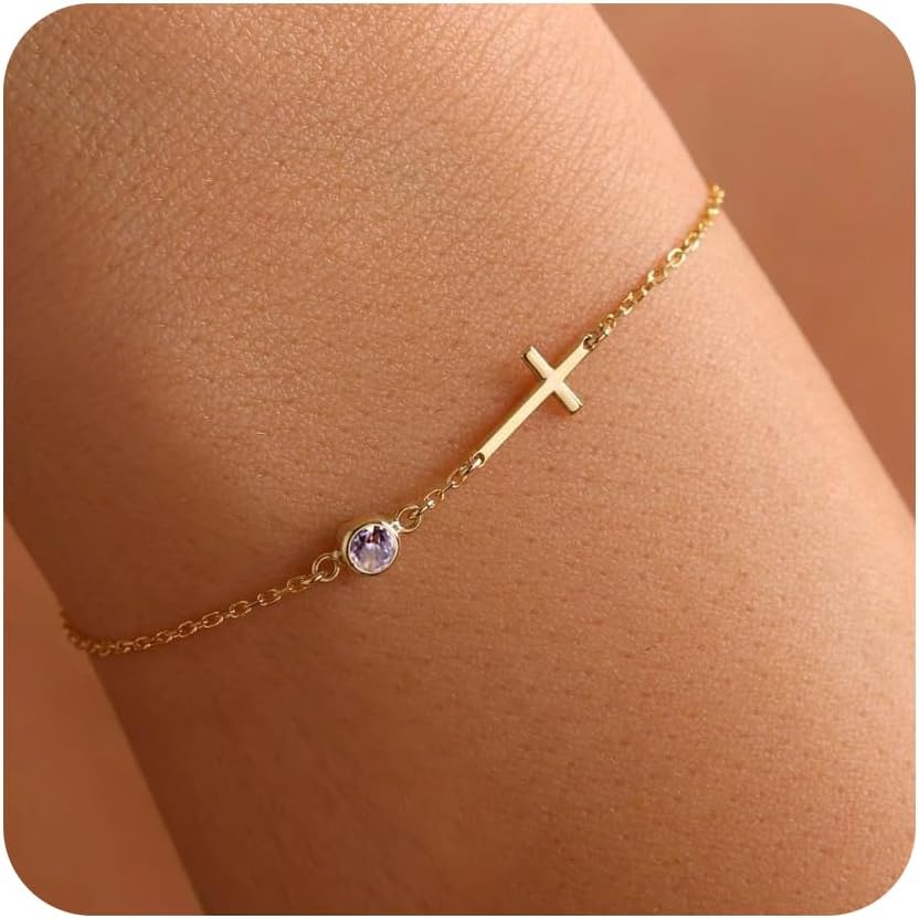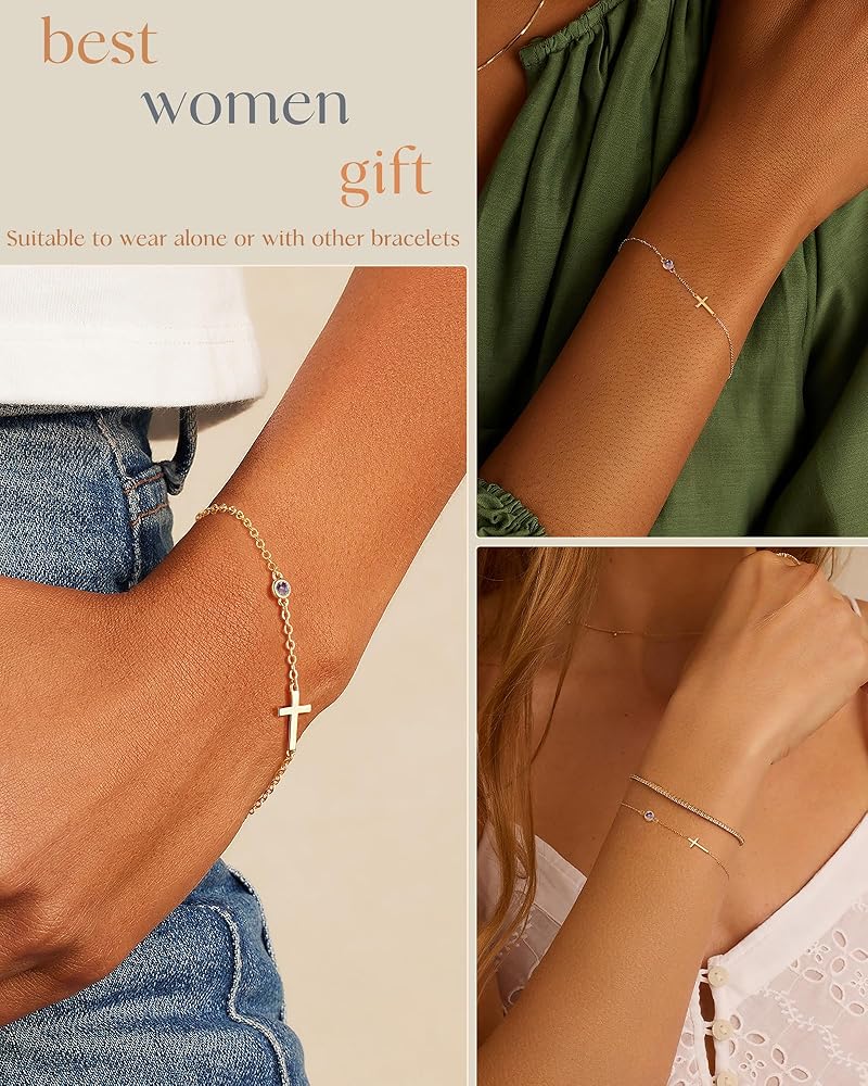 CROSS BIRTHSTONE DESIGN: The unique bracelets design of the cross with 12 months birthstones can be customized according to personal preference, representing the wearer's birth month or important life events, it is the best choice for your mother, daughter, wife, friend or your own birthday gift