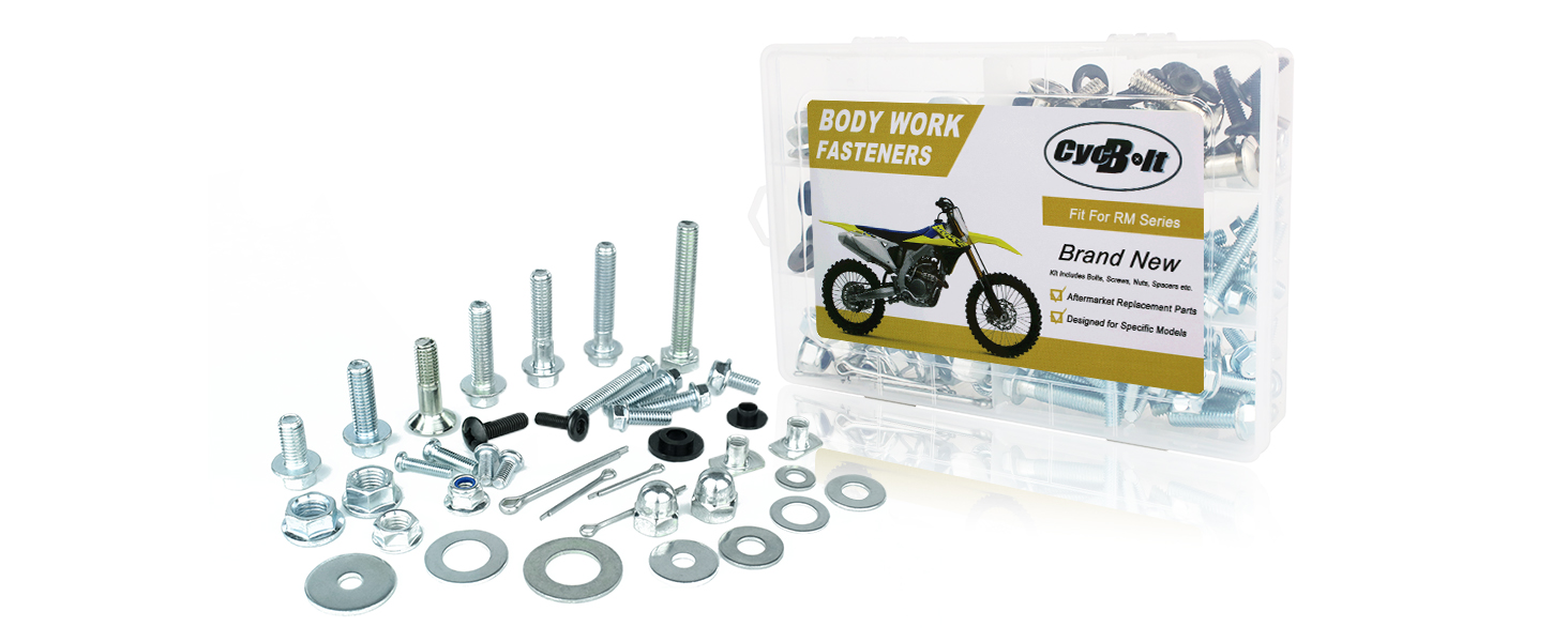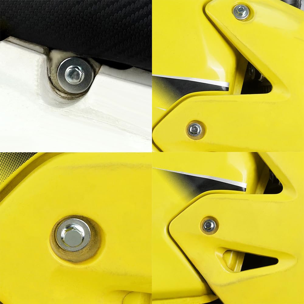 • Extensive Applications: The Bolt Kit Used for Bodywork, Front and Rear Fenders, Side Panels, Plastics, Number Plates, Seat, Swing Arm Components, Radiator Shrouds, Skid Plates, Chain Adjusters, Pipe, Fork Guards, Fuel Tank, Controls, Silencer, Exhaust Pipe Handlebars and More.