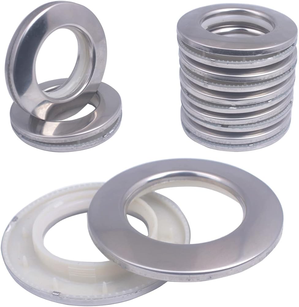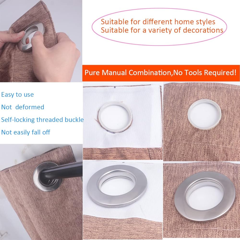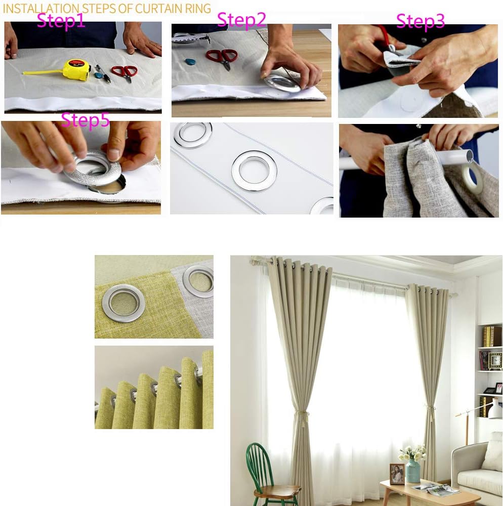 These round curtain grommets reinforce the area around a hole cut into any type of fabric or plastic, allows the user to easily attach the fabric to items such as rods or poles.