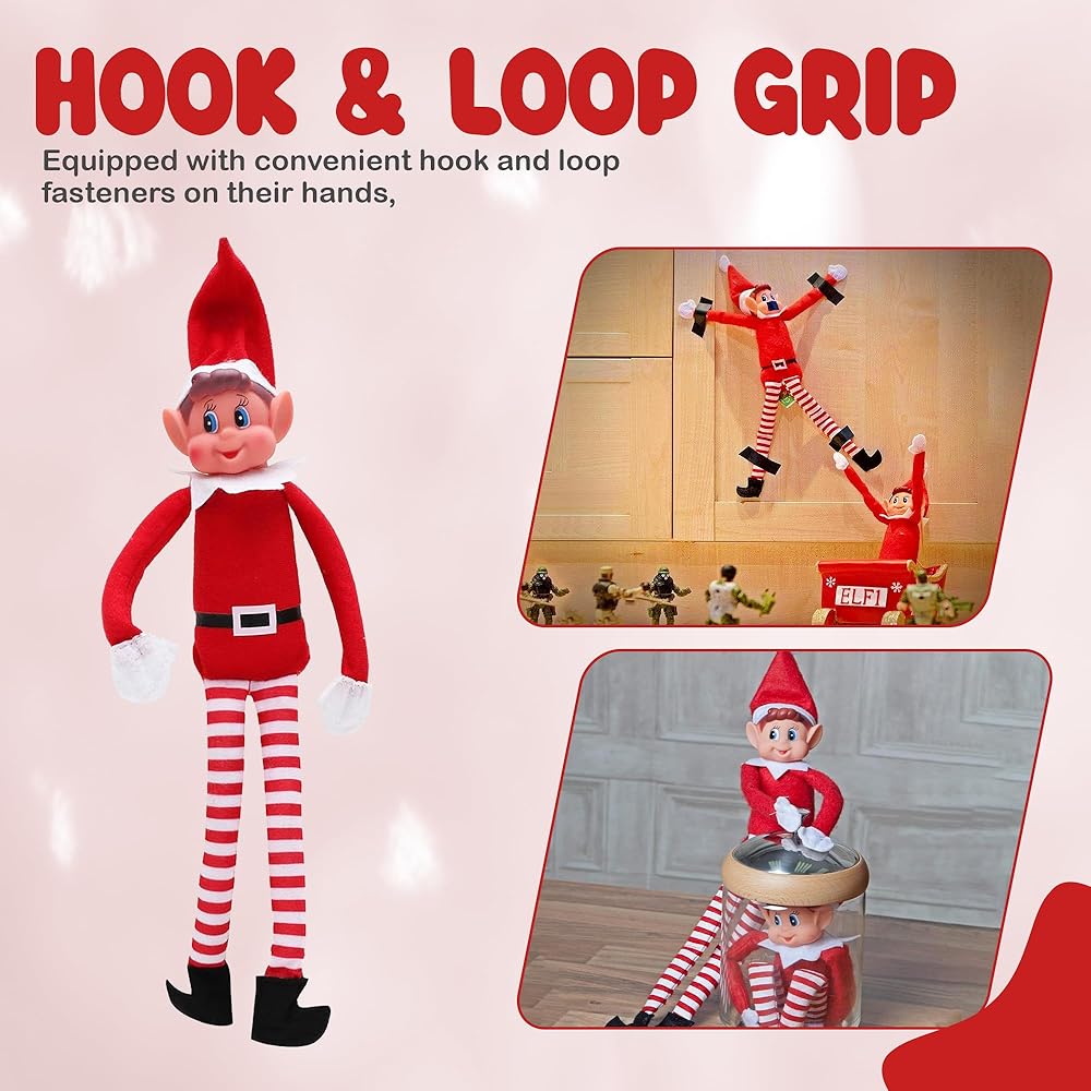 • أصبح الأذى سهلاً: مع وجوه الفينيل وأيدي قبضة الخطاف والحلقة ، يمكن لهذه الجان المشاغب أن تتعلق من الرفوف أو نظرة خاطفة حول الزوايا. قم بإنشاء مشاهد مرحة و Santa Little Helper Naughty Nughty مع دمى الرف هذه.