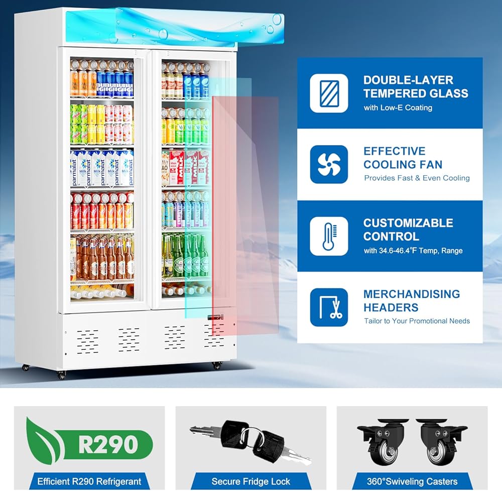 مع باب زجاجي ثنائي الطبقة ، يمكن أن يمنع التكثيف ويضمن درجات حرارة داخلية مستقرة. تعزيز الشاشة من خلال دمج إضاءة LED. هذا يضمن الرؤية الأمثل والوضوح لمنتجاتك ، مما يتيح للعملاء اختيار العناصر المطلوبة دون عناء