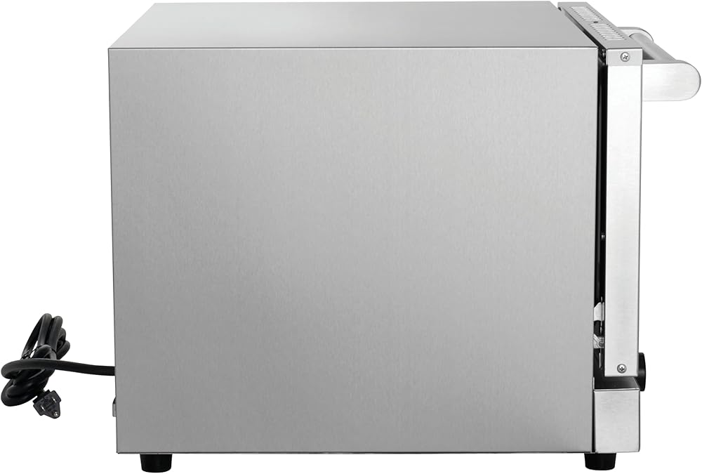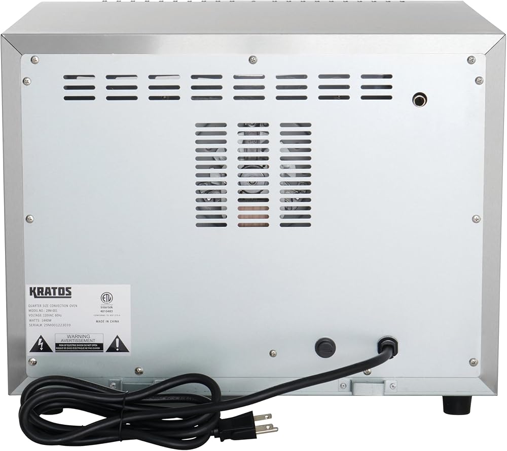 {COMMERCIAL GRADE} Durable stainless steel construction! 120V, 1600 Watts. Standard NEMA 5-15P plug. ETL certified for commercial use. Warranty void if used in a residential setting. Ideal for low and medium duty applications – not intended for high volume baking, frozen items, or to take the place of a heavy-duty floor convection oven