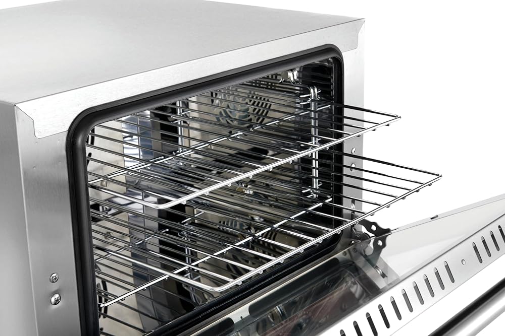 {CAPACITY} This durable and reliable half sized commercial countertop electric convection oven holds (4) 1/2 size sheet pans. It features (4) adjustable wire racks