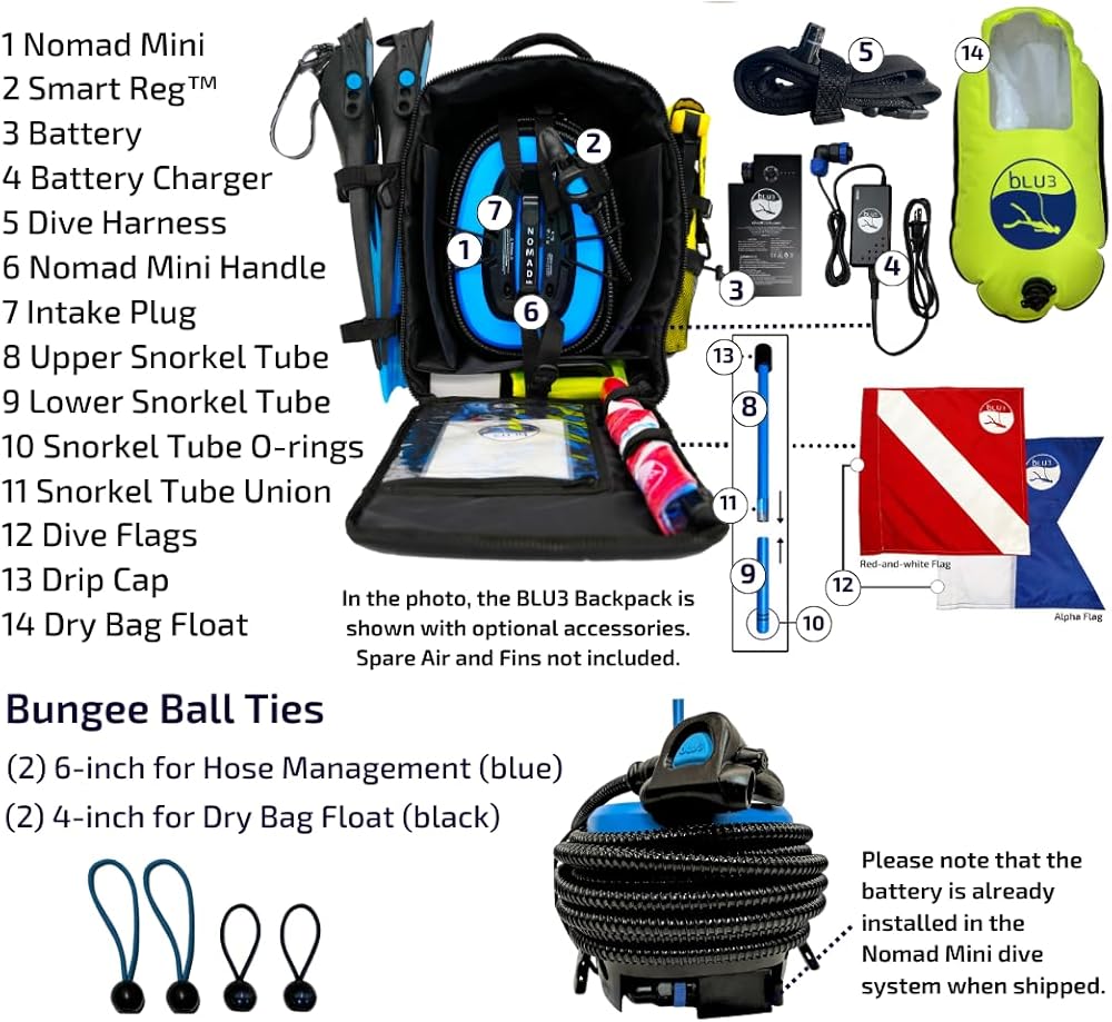 وقت الغوص الممتد: يمكّن ملحق مجموعة DiveBoost لـ Nomad Mini الغواصين من توصيل بطاريتين ، مما يعزز مدة الغوص. الغوص أعمق وأطول مع هذه اللعبة الإضافية المتغيرة.