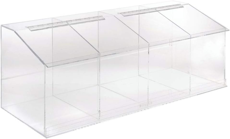 This acrylic display case is designed with a custom lift top door to be used for full or self-service establishments. The food bin features a ledge for signage, preventing confusion about the product and price. This acrylic display case is designed with a rear opening to easily remove loose crumbs when needed. The translucent exterior allows the consumer to clearly see the delicious baked goods inside. The holder ships unassembled to escape shipping damage. Instructions for easy assembly of the unit are included.