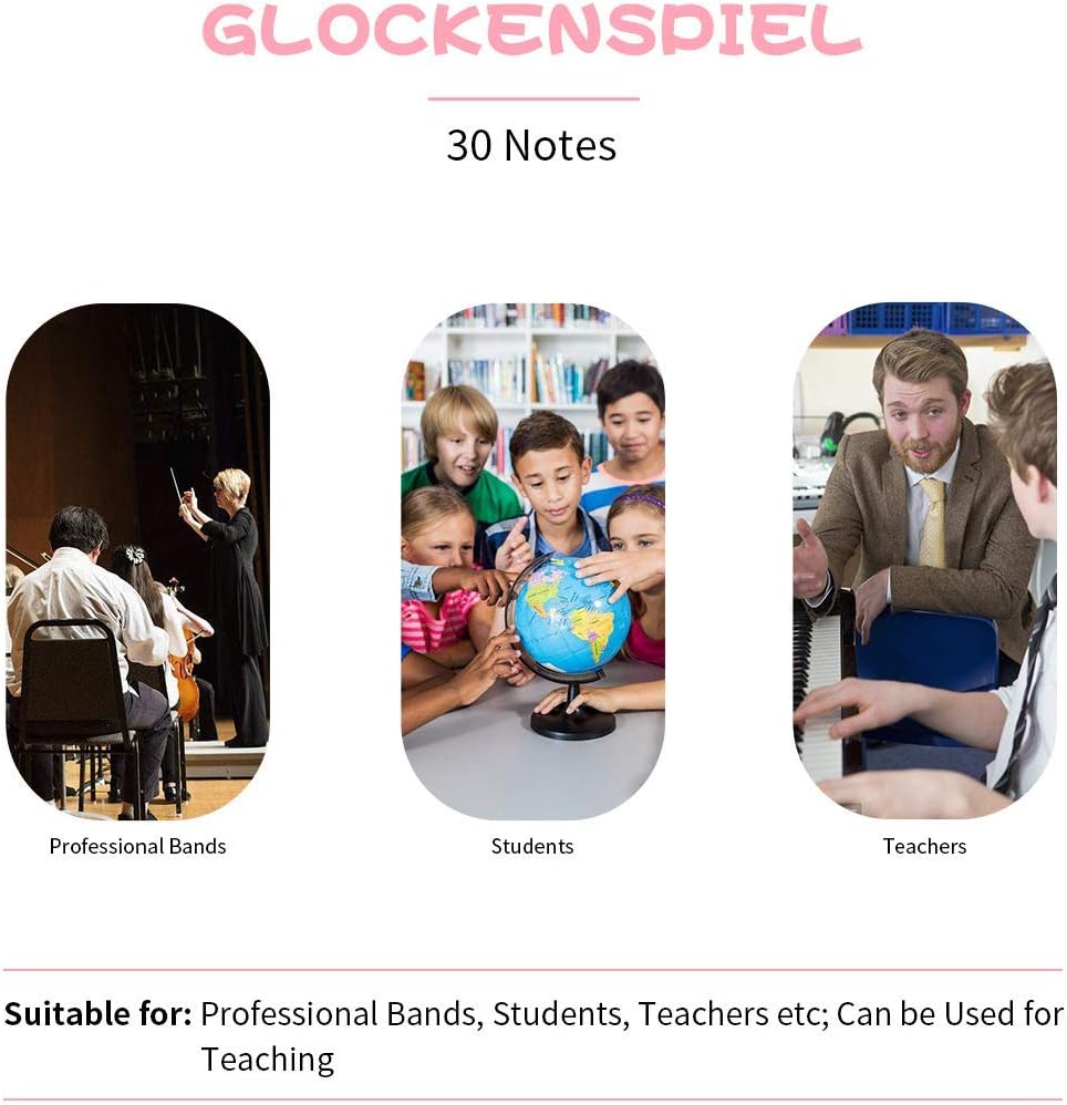 • [معلومات عن المنتج التفصيلية]: تم بيع Glockenspiel مع 27 ملاحظة مع حقيبة حمل و 2 مطرقة. يبلغ قياسه 17 "(ل) × 9.5" (ث) × 1 "(ح) ، ويزن 3.5 رطل. إنه هدية مناسبة للأشخاص من جميع الأعمار.
