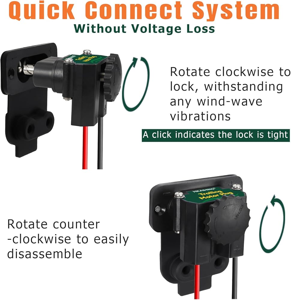 قابس محرك التصيد السريع: هذا 027-0004-KIT مبلغ 12،24،36،48 فولت اتصال DC ، وملاءمة مثالية لاتصالات البطارية لمحركات التصيد ، أو الإلكترونيات الملاحية ، أو أي ملحق DC