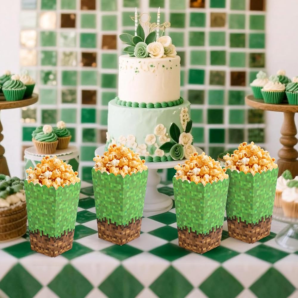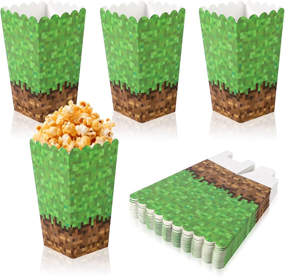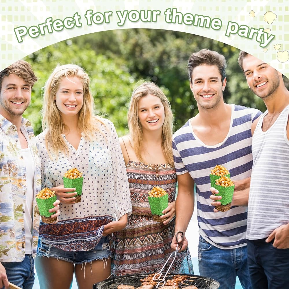 Miner Theme Design: The popcorn boxes feature a creative miner theme, with vibrant green and brown colors, providing an authentic movie experience. Their foldable design adds extra convenience to your life.