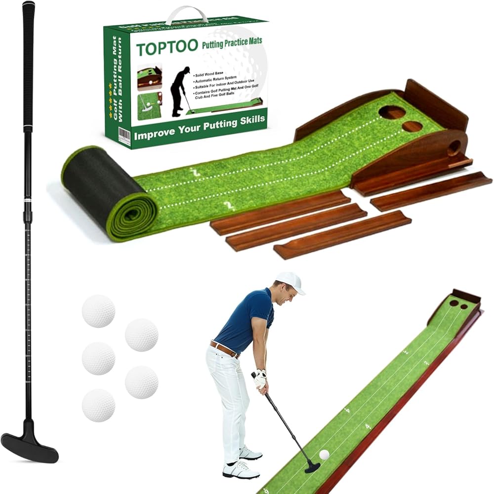 • التدريب في أي مكان ، في أي وقت: يأتي كل غولف وضع حصيرة مع نادي للجولف و 5 كرات ، لذلك ليست هناك حاجة لشراء ملحقات إضافية. ابدأ التدريب على الفور. يتميز TopToo Golf Phat Mat بهيكل قابل للإزالة وواجهة مسار مغناطيسي لسهولة التثبيت. كما يمكن تخزينه بسرعة بعيدا. خذها معك إلى منزل أحد الأصدقاء أو المكتب أو مكان الإجازة.
