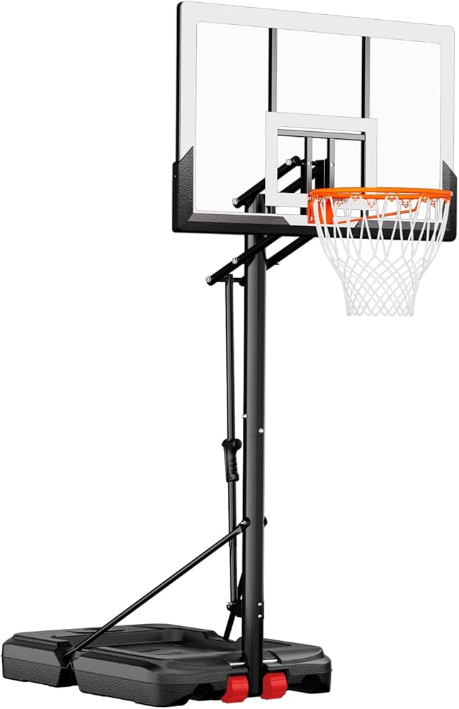Sturdy Base for Safety: The outdoor basketball hoop features a robust base that can be filled with 13.2 gallons of water or 143.3 lbs of sand, this portable outdoor basketball goal stays firmly grounded during aggressive dunks and fast-paced games—no wobbling or tipping