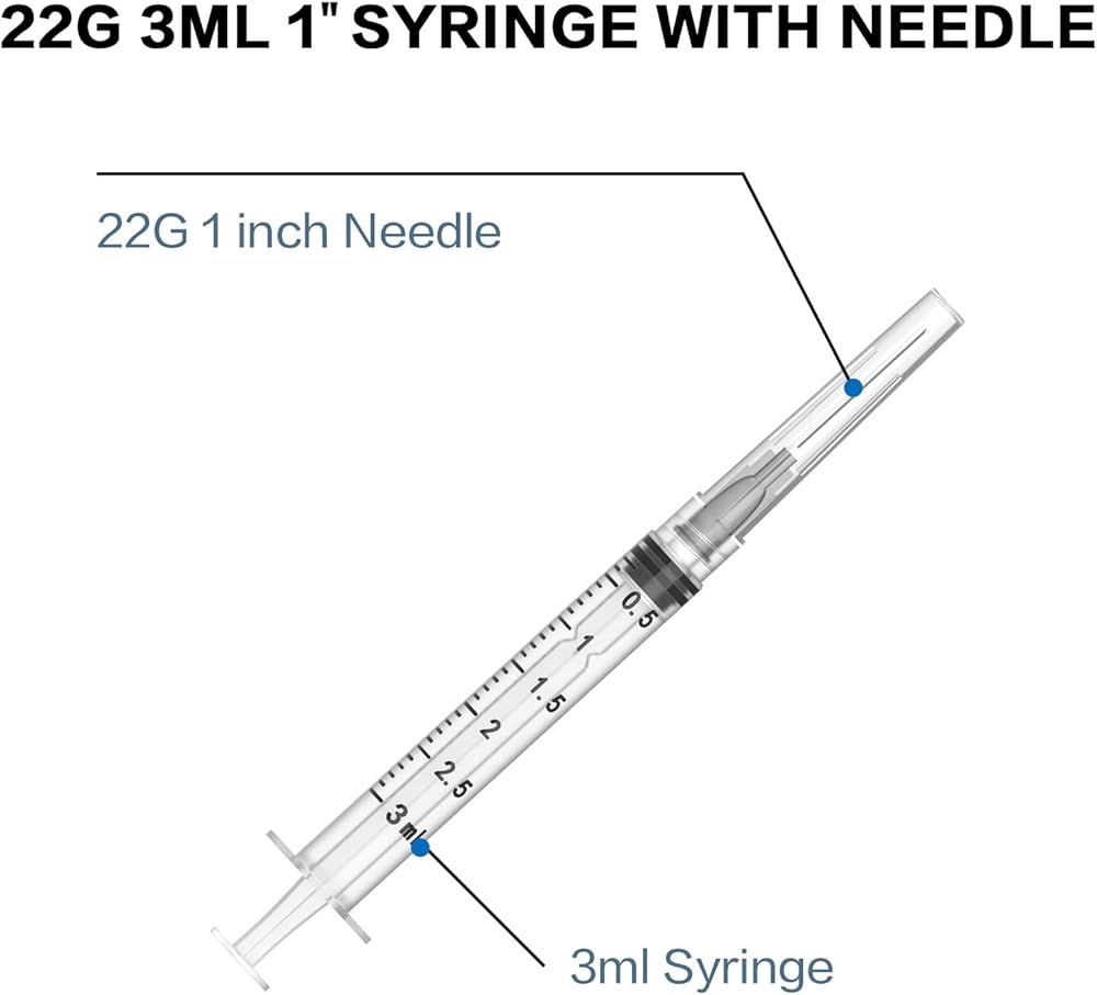 【Package contains】- 3cc/ml 22 G 1 inch, individually sealed, pack of 100, each individually sealed package.
