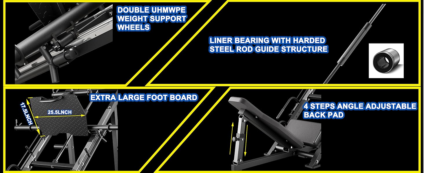 【Durable and Reliable Frame for Stability】 Constructed from heavy-duty 50mm x 50mm x 1.5mm steel, this calves workout machine features linear bearings and hardened steel rods for smooth, friction-free movement. This enhances performance and guarantees long-lasting reliability.