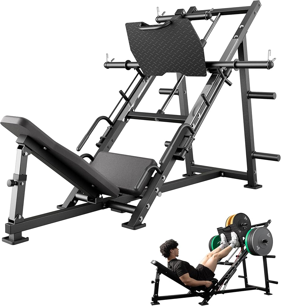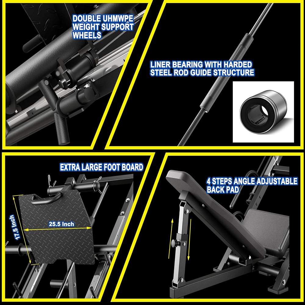45-Degree Leg Press Machine - Heavy-Duty Dual Functionality Leg Quads and Calves Workout Equipment with Adjustable Back Pad, Large Foot Board, and 1600 lbs Load Capacity for Home Gym
