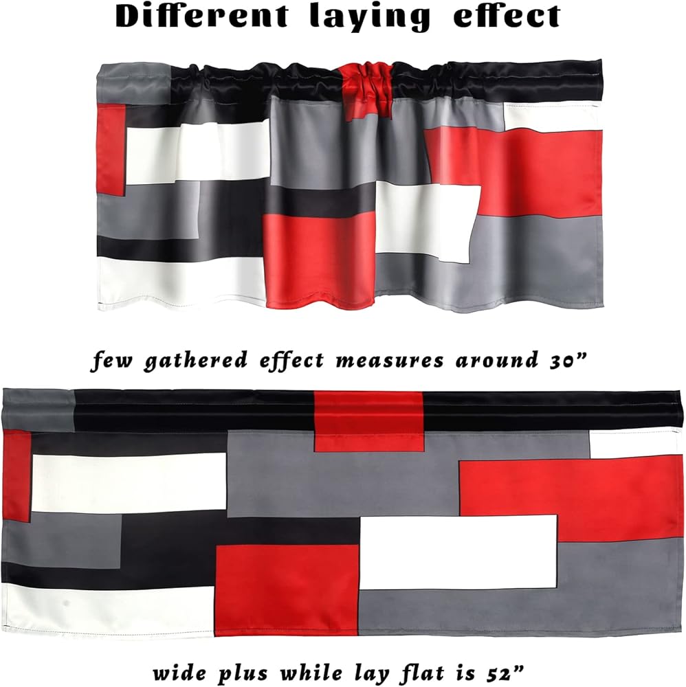 【خامة عالية الجودة】هذه الستارة مقاس 52 × 18 بوصة مصنوعة من نسيج بوليستر مرن عالي الجودة، وهو ناعم ومتين. يمكنه حجب الحرارة بشكل فعال وله تأثير ثني رائع. أشياء ضرورية لحياة منزلية جميلة.