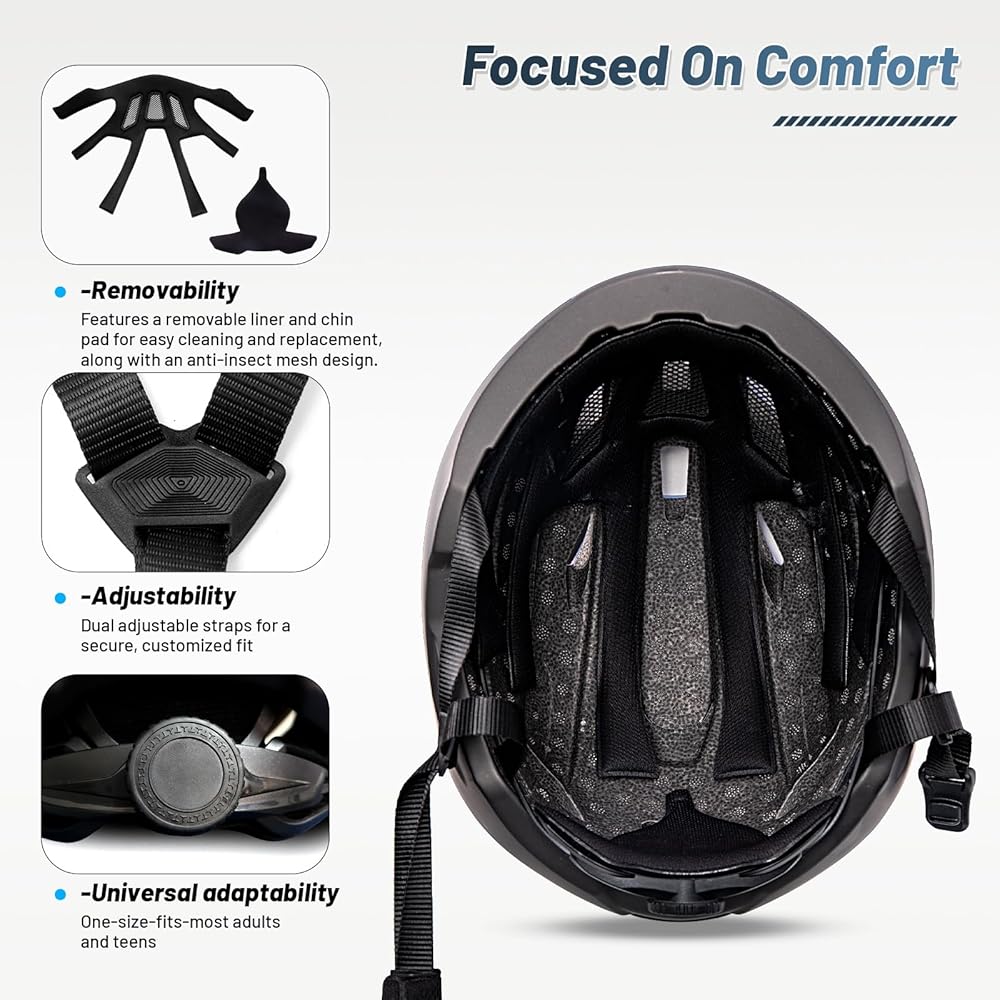 نظام الملاءمة: خوذة الدراجات مناسبة لدراجات الدراجات من 56-61 سم/22.04-24.01 بوصة ، للجنسين ، ضابط مستدير في الجزء الخلفي من نساء خوذة الدراجة البالغين وحزام الذقن الناعم القابل للإزالة يجعل من السهل ضبط خوذة الدراجة إلى الحجم الصحيح.