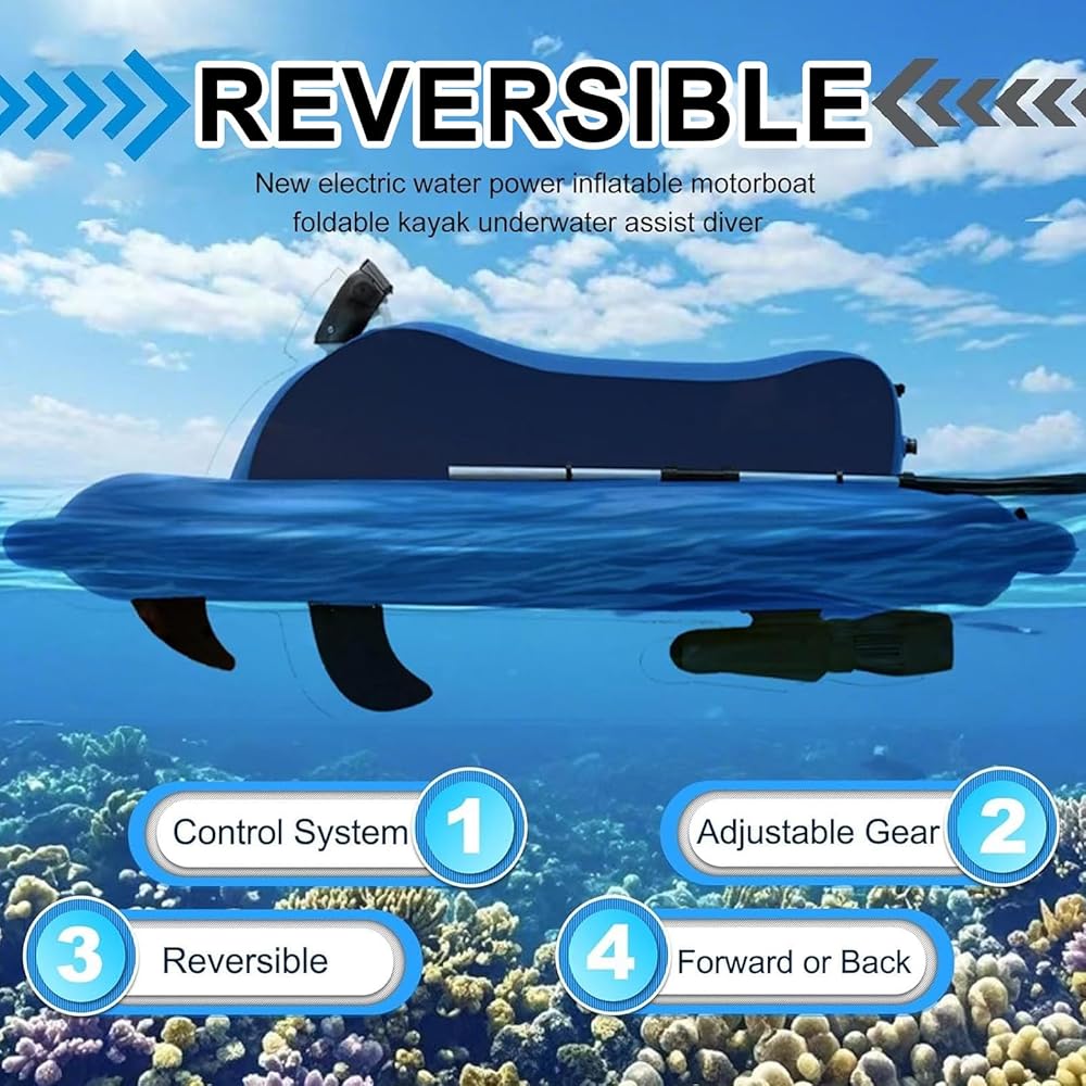 【Engineered for Comfort】Generous 185x95x55cm inflatable jets boat frame. housing secures to grip during underwater scooter use. Single-button start instantly activates the swimming booster function, freeing hands for exploration