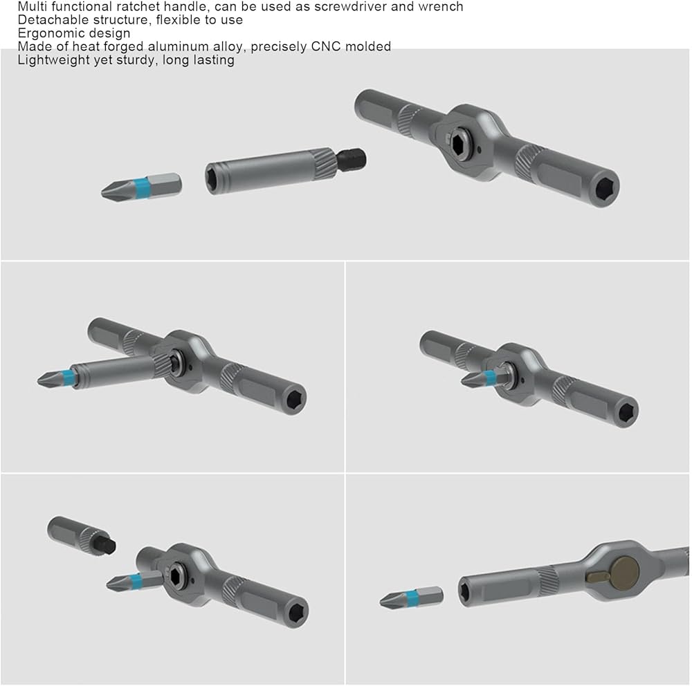 2. [Flexible Ratchet Handle] The handle features a detachable structure that allows for various combinations and multi functional adjustments to adapt to different situations. Made with heat forged aluminum alloy, lightweight yet sturdy.