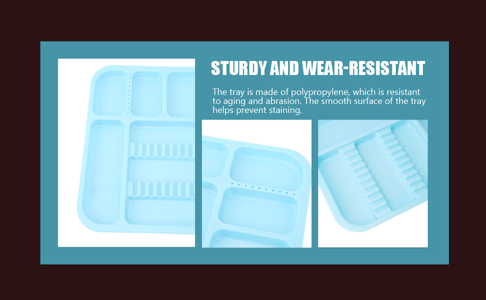 تخزين منظم مع أقسام مقسمة: يضم صينية مقسمة أداة الأسنان الخاصة بنا تصميمًا مدروسًا يضم أقسامًا مخصصة لسهولة التخزين واسترجاع أدوات الأسنان أو الأدوات الطبية. يضيف اللون الأزرق جمالية مهدئة ومهنية إلى مساحة العمل الخاصة بك ، مما يعزز كل من الوظائف والجمال. تماما لعيادات الأسنان ، استوديوهات الوشم ، وصالونات التجميل.