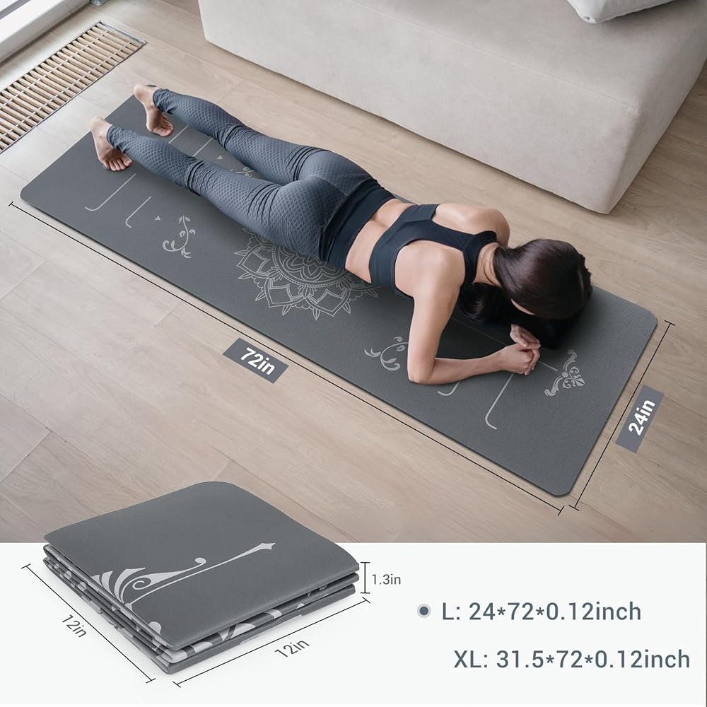 ECO-FRIENDLY MATERIAL: The Avoalre foldable Yoga mat is crafted from Premium PVC material, free from harmful BPA and phthalates. It's soft, nontoxic, and environmentally friendly. (For the best experience, please unfold and air out your mat for 2 to 3 days before use.)