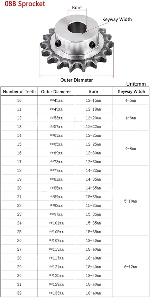 Keyway Bore: 10/12mm (keyway 4mm),14/15/16mm (keyway 5mm),18/19/20/22mm (keyway 6mm),24/25/28/30mm (keyway 8mm),32/35mm (keyway 10mm)