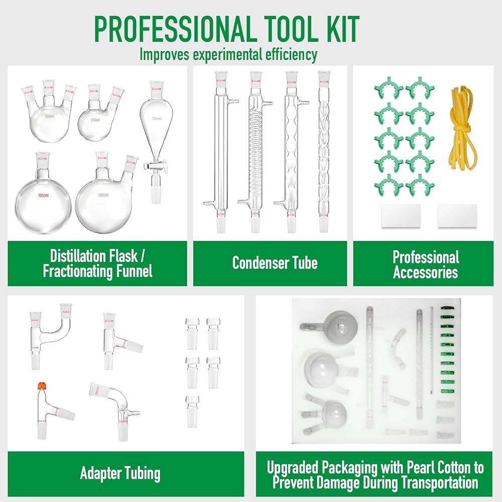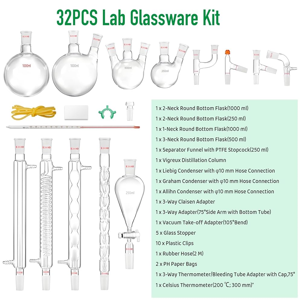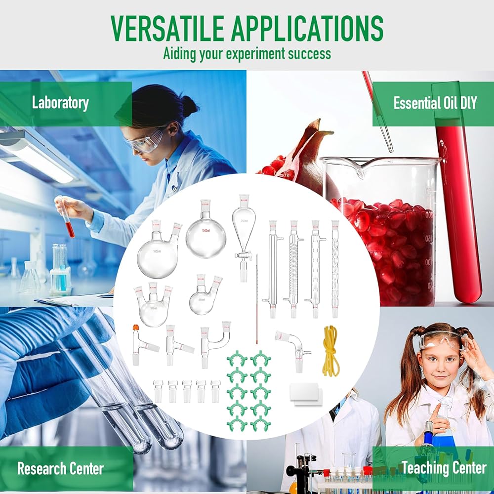 【WIDELY USE】The chemistry distillation set includes 32 essential devices that are perfect for distillation, purification, and synthesis, making it an excellent kit for any chemistry experiment. and Also Can DIY the essential oil whatever you like.