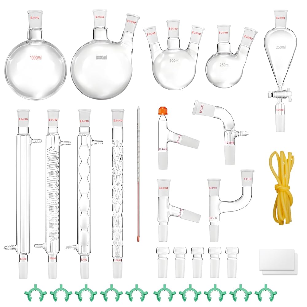 【DURABLE & REUSABLE】The glassware set can be heated directly in an open fire and can withstand typical laboratory thermal changes in chemical processes such as heating and cooling, making them durable and reusable for your experiments.