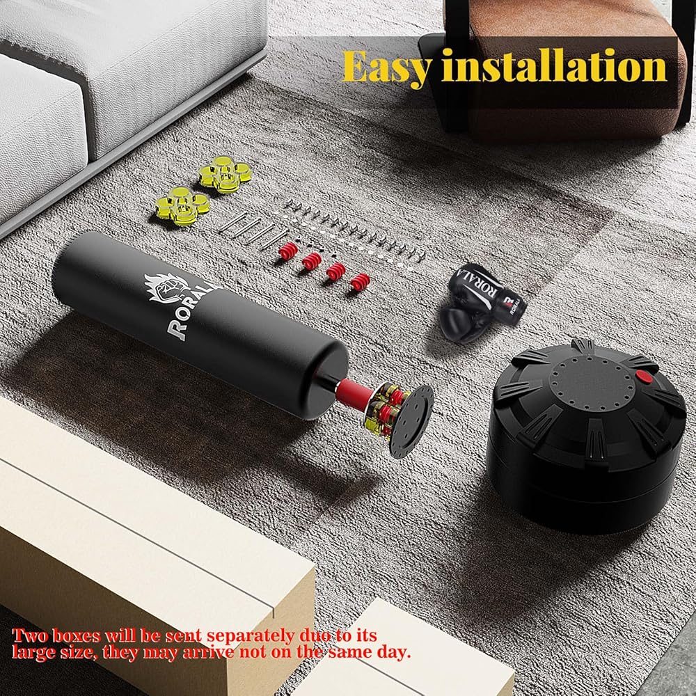 【Punching Bag with Stand】: Stands approx. 70'' tall, RORALA punching bag comes with a pair of 12-Ounce gloves, fit for adults, teens and kids (47-73'' tall). Great gift for family workouts, stress release and strength build, saving you time and money! Start Now, It's Fun! Two Parcels will be delivered separately due to its large size and it may not arrive on the same day,please keep daily tracking for your parcels to avoid lost.