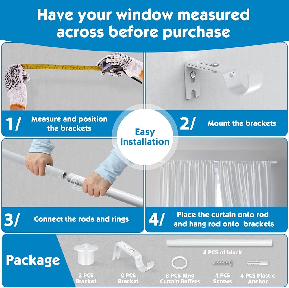 • مقاس عالمي: قضبان ستائر مثالية للاستخدام مع الإضاءة، الوزن المتوسط أو الستائر الثقيلة بحد أقصى في غرفة المعيشة الخاصة بك، المطبخ، غرفة النوم، غرفة الطعام، المكتب، نافذة باب الفناء أو الزجاج المنزلق