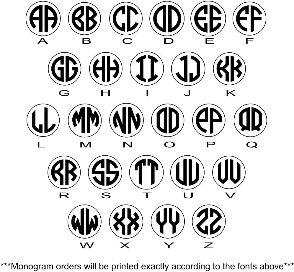 Three letter monogram format: 1st Initial, Last Initial, Middle Initial. Please see image showing how monograms engrave and make sure to enter the initials in the order that you wish for them to appear.