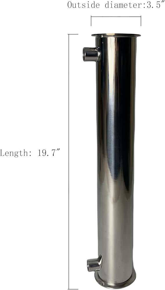 This 3-inch condenser is designed for larger columns 4" to 8", it's made of heavy duty stainless steel 304 designed for long-term usage, perfect for alcohol distillers and essential stills.