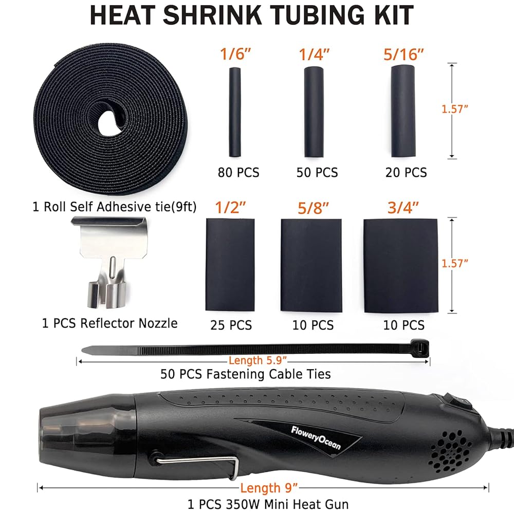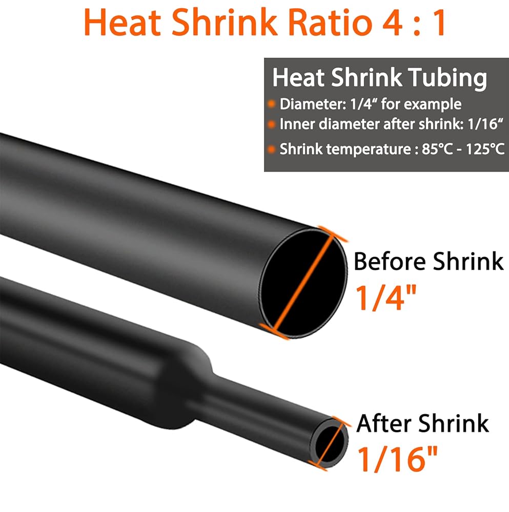【Various of Sizes】: We have included 8 most commonly used diameters ranging from 1/24" (1 mm), 1/12" (2 mm), 1/6" (3 mm), 1/4" (4 mm), 1/24" (6 mm), 5/16" (8 mm), 2/5" (10 mm), 11/20" (14 mm). Heat shrink tube has the advantages of good electrical insulation, good sealing, corrosion resistance and high temperature resistance, Anti-aging, tough, not easy to brea. Protects wire connections for a long time.