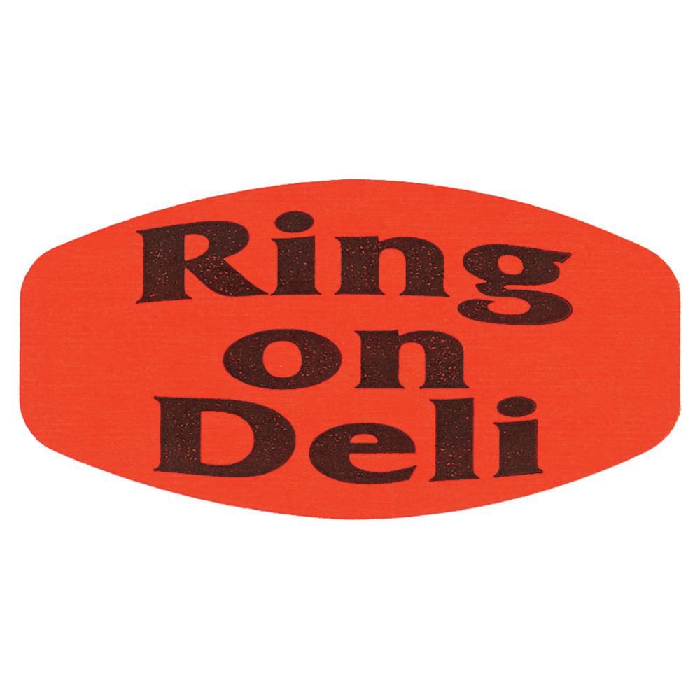 Ring On Deli Key Fluorescent Grabber Grocery Store Labels are a great way to label your deli department items for the cashier to see. These fluorescent red day-glo preprinted labels are bold and just the right size to grab your employees' attention. Ring On Deli Key Fluorescent Grabber Grocery Store Labels will help you keep inventory and department receipts more efficiently if your employees can easily identify what department key they need to use for purchases. The labels are 7/8 H x 1 3/8 L and there are 1000 labels per roll. These Grabber Labels are also efficient since they are preprinted and may be used on whatever deli items you have available, which helps to save you money.