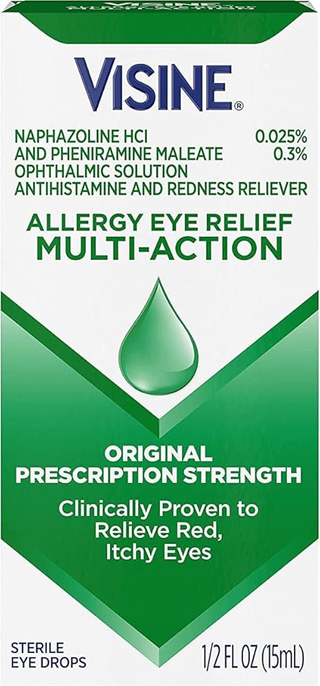 Visine-A Eye Multi-Action Eye Allergy Relief Drops, the ultimate solution for soothing and relieving allergy-related eye discomfort. This pack includes three 0.5 fl oz bottles of Visine-A, designed to provide you with long-lasting relief from the irritating symptoms of eye allergies. Whether you're dealing with itchy, red, or watery eyes due to pollen, pet dander, dust, or other allergens, Visine-A Eye Allergy Relief Drops are here to help. These drops are specially formulated to offer multi-action relief, targeting various aspects of eye allergies to ensure your eyes feel refreshed and comfortable. Visine-A combines the power of antihistamines and decongestants to combat allergy symptoms effectively. The antihistamine component helps relieve itching and redness, while the decongestant works to reduce eye redness and swelling, providing quick and noticeable relief.