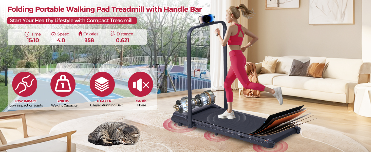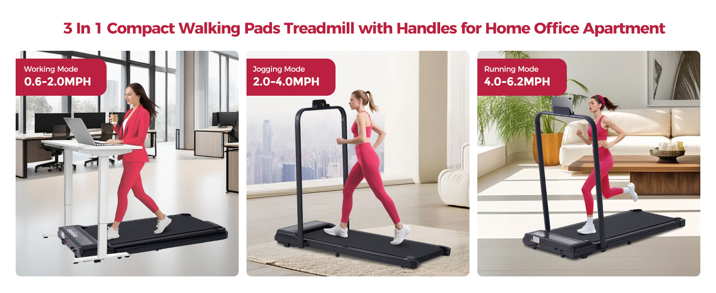 وسادة المشي المدمجة مع شريط المقبض ، وسادات المشي محمولة 3.0HP مع مقابض للمنزل صغير ، 0.6-6.2 ميل في الساعة المقطعية الصغيرة المطحنة للمساحات الصغيرة ، 320 رطلاً