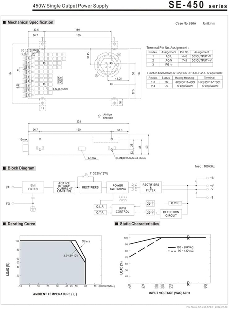 SE-450-48 451.2W 48V9.4A SE-450 Series Single Output Power Supply 450